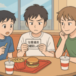 2025年9月29日 / 最終更新日時 : 2025年9月29日 管理者 創作小説 鬼を狩る子孫 第二話 影を落とす契約書(8) 紙片の意味を探れ! 図書館を出た三人は、紙片を折り畳んでポケットにしまい、駅前のファストフード店に入った。 「よし、ここなら声をひそめなくてもいい」 悠夜がポテトをつまみながら言う。 「なあ、ほんとにこれ、ただの落書きじ […]