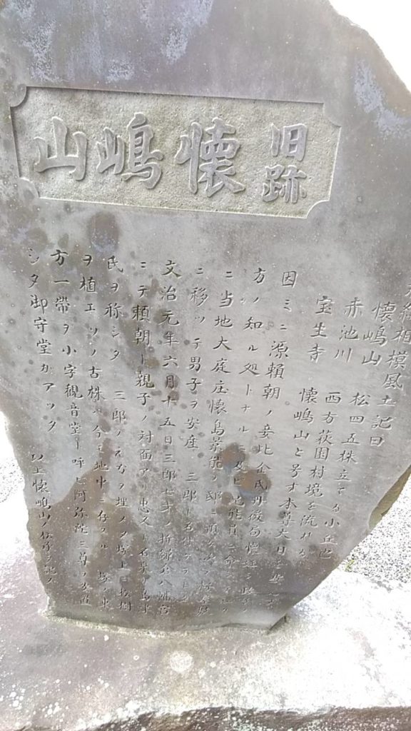 碑文の冒頭、この内容は、天保の「新編相模国風土記稿」に依るものであることが示されています。鎌倉時代の吾妻鏡には記されていませんので、一つの伝承と捉えるのが正しいのではないかと思います。