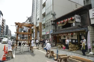 少し前まで見かけることができたのは白川女です。清楚な姿で、朝摘みの花と自家製の番茶を入れた藤の箕を頭上に載せ、「花いりまへんか~」と唄うような売り声とともに街を流していたとか。やがて大八車からリヤカーになり、交通事情から今では軽トラックでお得意さんの家を訪れます。普段は主に仏花を、年の暮れには注連縄なども扱います。