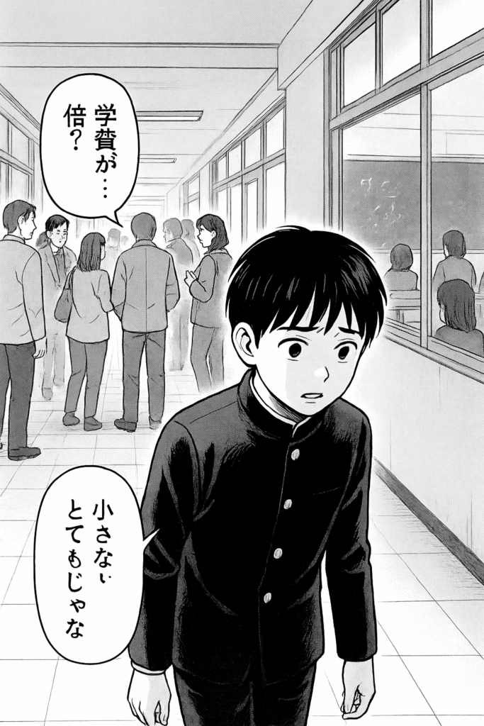 昇降口の前では保護者が集まって、またお金の話をしている。