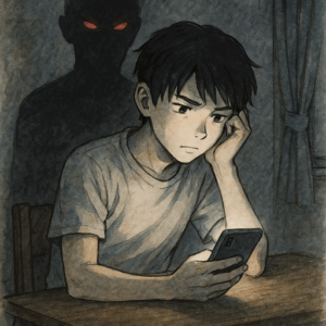 翌日の昼休み、教室の空気はまだ重かった。黒板の隅には、かすかに消し跡の残った文字――「みんな、見てたよね」――が薄く浮かんでいる。誰も話題にしない。だが、話さないこと自体が何かを語っているようだった。