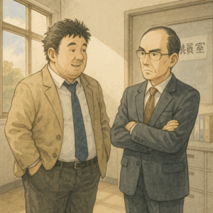 カーテンが揺れ、机の上の紙が一枚、ひらりとめくれた。