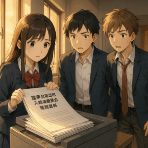 午後の理事会室には、秋の日差しが斜めに差し込んでいた。