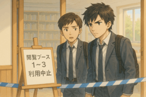 その瞬間、閲覧ブースの奥で微かな影が揺れた。